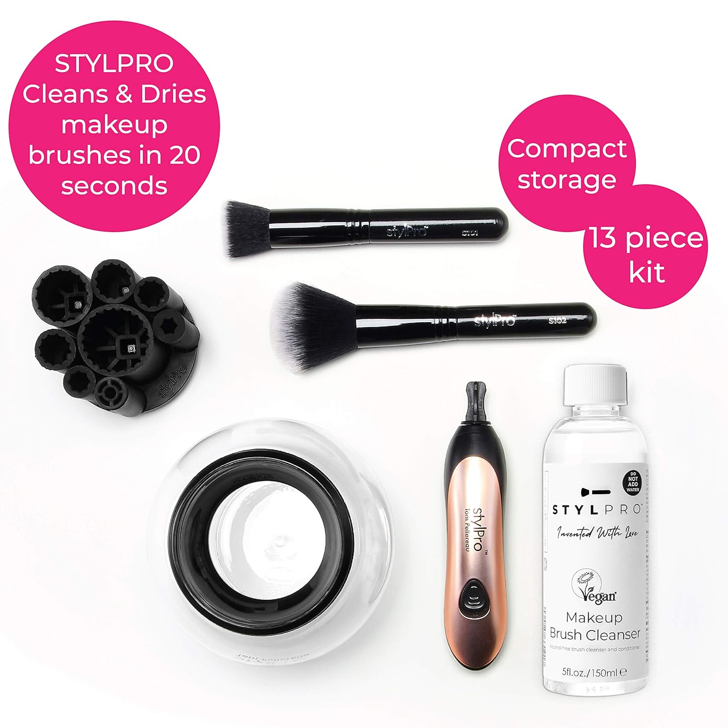 Amazon Com Stylpro Gift Set Kit Electric Makeup Brush Cleaner And Dryer Machine With 8 Brush Collars Brush Cleanser Fast Automatic Spinning Brush Cleaner With Heat Resistant Bowl Original Beauty